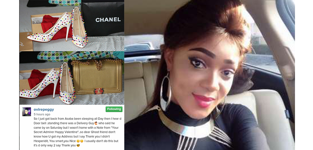 Ex beauty queen and Nollywood actress, Peggy Enoho Ovire, got a very expensive set of luxury fashion items as Valentine gifts from a secret admirer.