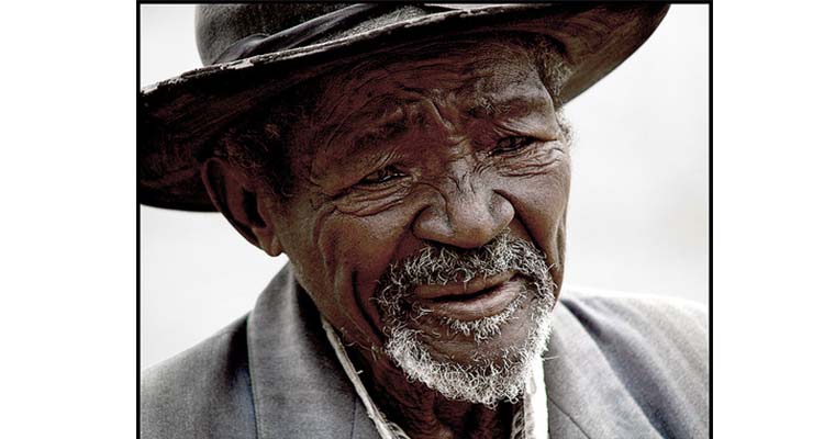 A boy perched on a tree sees what an old man sees seated on a stool.